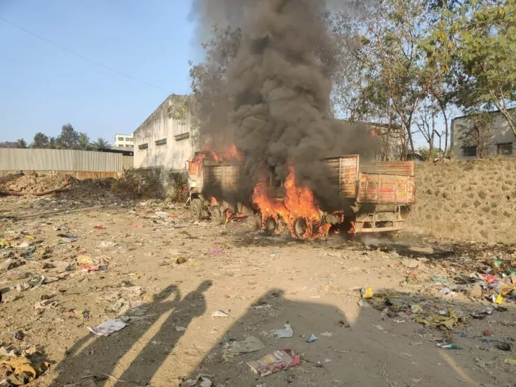 पुणे लाईव्ह I २९ डिसेंबर २०२२ I वाघोली येथील कावडे वस्ती परिसरात एका ट्रकला भीषण आग लागल्याची घटना आज 29 डिसेंबरला सकाळी 8.30 वा. सुमारास घडली.पीएमआरडीए अग्निशमन दलाच्या गाड्यांनी तत्काळ घटनास्थळी धाव घेतली.अग्निशमन दलाकडून पाण्याचा मारा करून ही आग आटोक्यात आणण्यात आली.